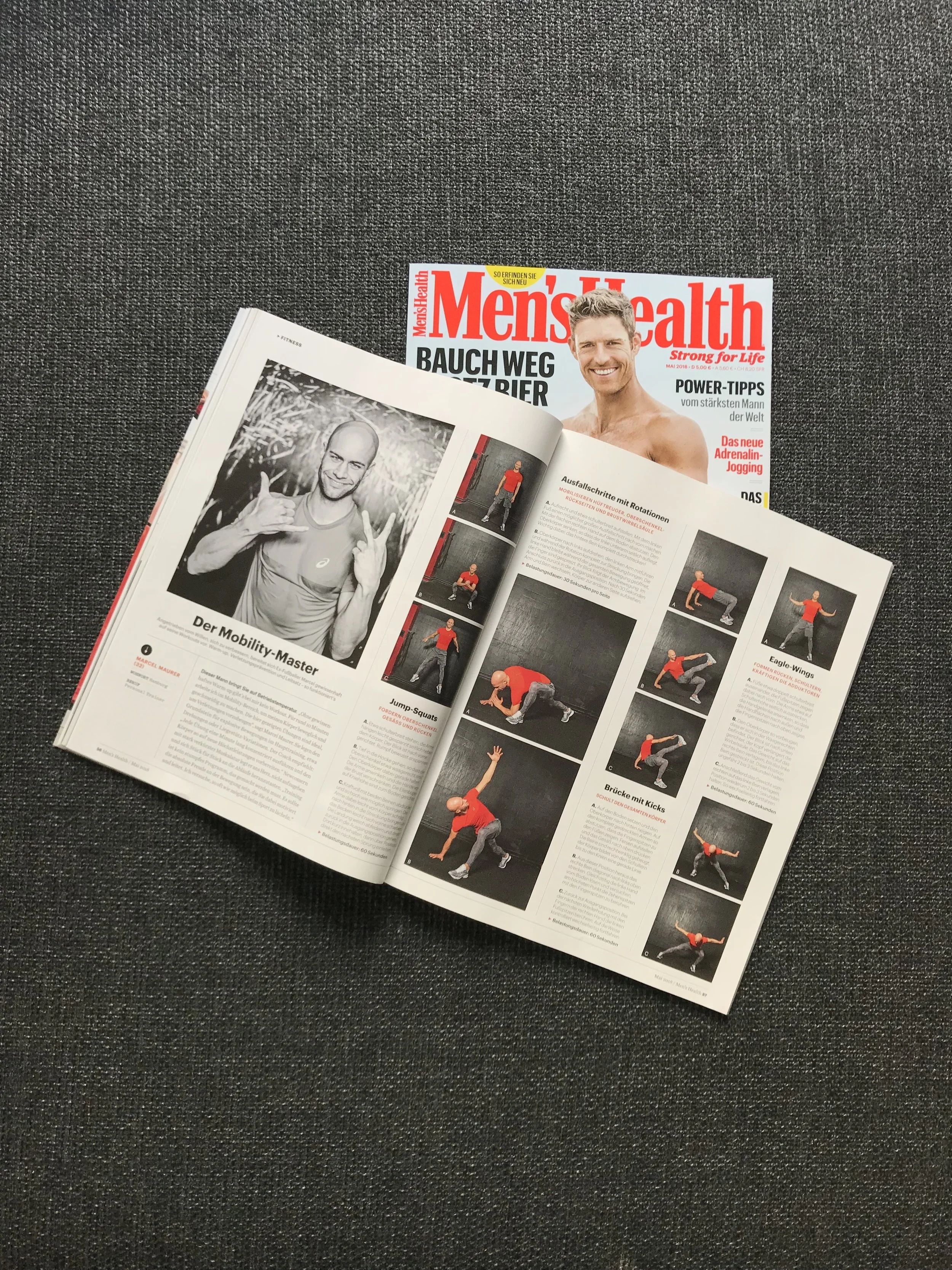 Die Men´s Health gilt als Lifestyle-Coach, der Männer motiviert und inspiriert, um das Beste aus sich herauszuholen. Im Januar 2018 durfte ich der Online-Seite der Women´s Health meinen Expertenrat zum Thema “Weiterbildungen und neue Fitness-Trends” geben. im April 2018 veröffentlichte die Men´s Health auf ihrer Online Seite einen ausführlichen Artikel über mein Mobility Konzept, bevor ich in der Mai Ausgabe freudestrahlend als “Mobility Master” präsentiert wurde.